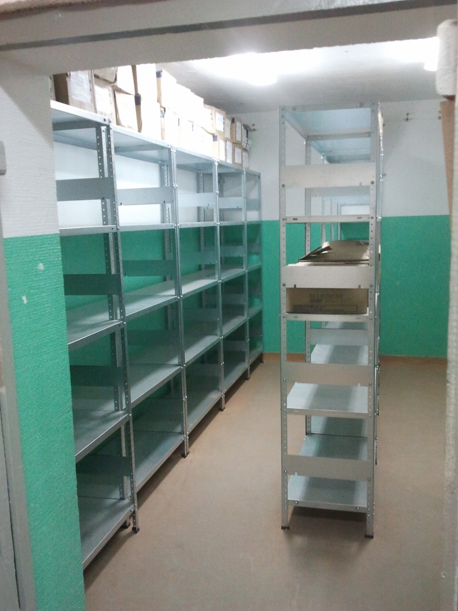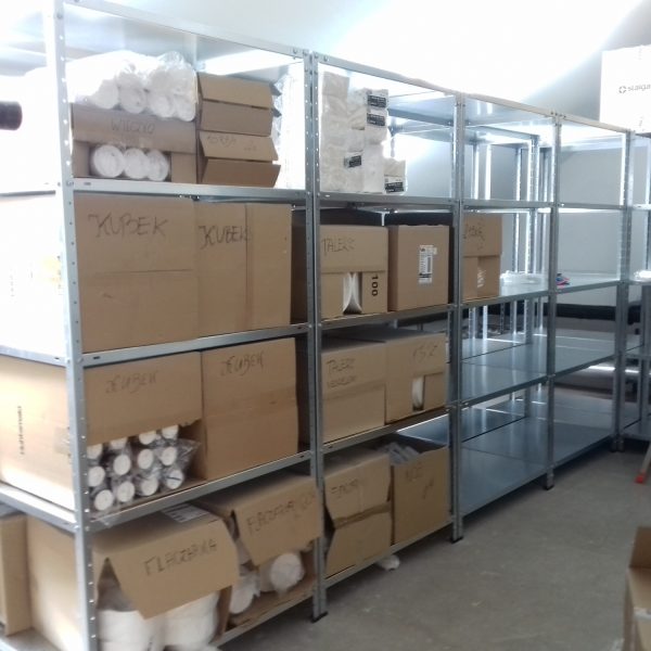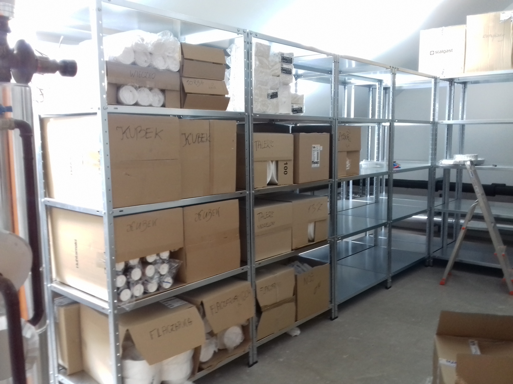 W zeszlym roku wyposażyliśmy archiwum w regały do przechowywania dokumentów ( 2 piętra w 3 etapach) zaś w tym roku wyposażyliśmy pomieszczenie gospodarcze w dziale żywienia.