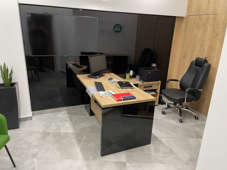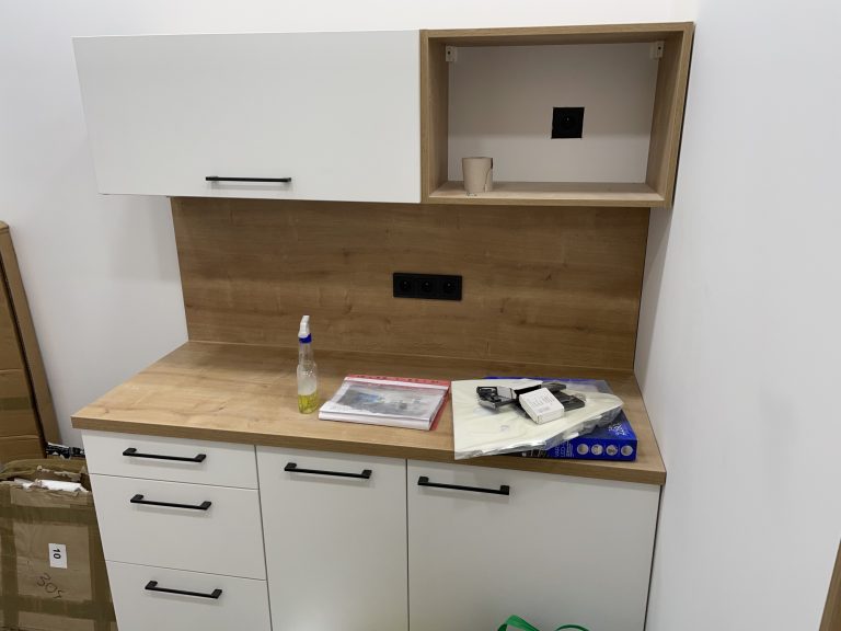 Nasza praca polegała na dostarczeniu wyposażenia na podstawie projektu wykonanego przez Archinside Studio Katarzyna Parzymies. Dostarczyliśmy meble z firmy Mdd, siedziska z firmy Bejot i Nowy Styl. Ponadto wykonaliśmy wg. projektu aneks kuchenny, obudowy ściany i lamele ozdobne z płyty meblowej na naszej stolarni . Dodatkowo zadbaliśmy też o dodatki rośliny w donicach i panele akustyczne .