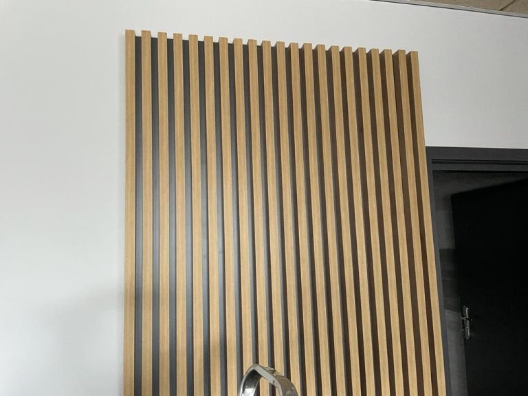Pomieszczenia zostały wzbogacone również w ozdoby takie jak lamele, okładziny ścian z płyty meblowej pasujące do kolorystyki mebli oraz płyty z betonu architektonicznego.