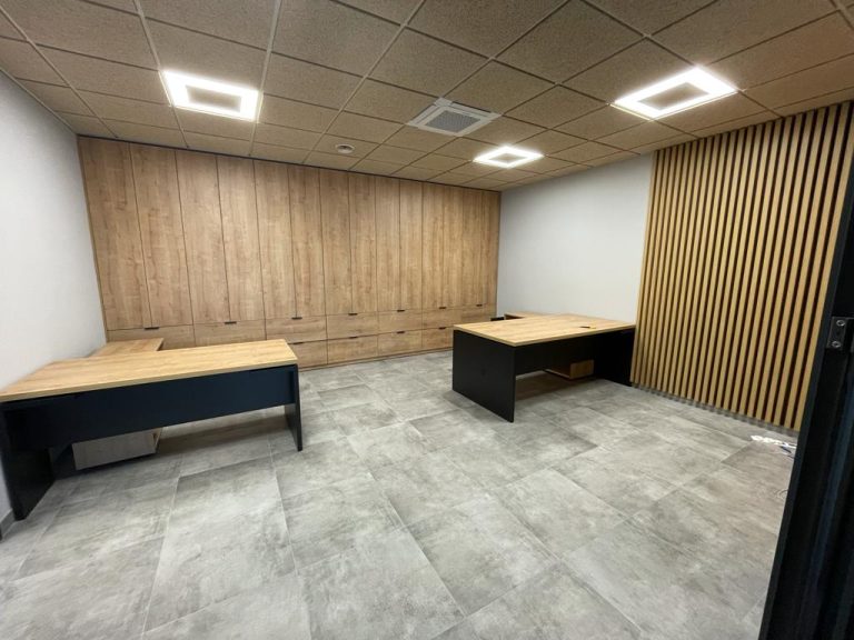 Sala sprzedażowa – lada składa się ze stanowisk do sprzedaży , regałów aktowych , szafek , biurek . Gabinet został wyposażony w duże biurka wraz z szafkami podręcznymi oraz ciąg wysokich bezuchwytowych szaf aktowych, które dają wrażenie obudowanej ściany .