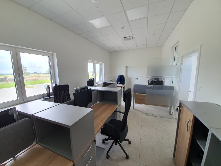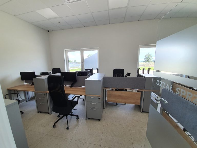 Nowo powstała siedziba hurtowni mięsa i wędlin Madar w Szczecinie została wyposażona w meble biurowe obejmujące biurka, stoły, szafy, regały, komody, kontenerki, panele akustyczne oraz uchwyty do monitorów.