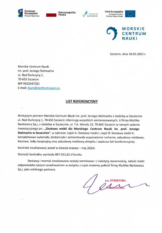 Dostawa mebli dla Morskiego Centrum Nauki im. prof. Jerzego Stelmacha w Szczecinie