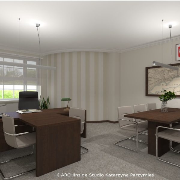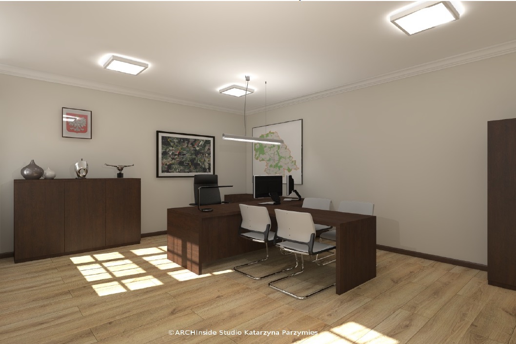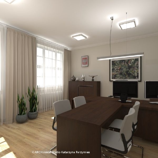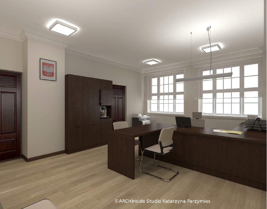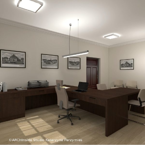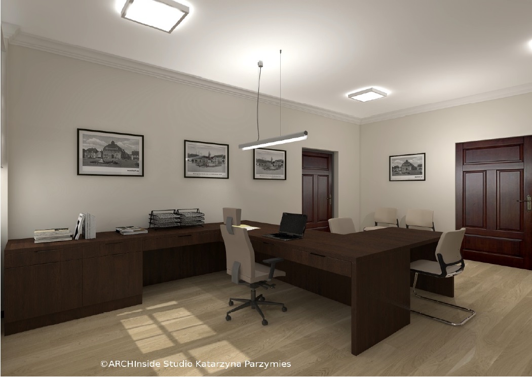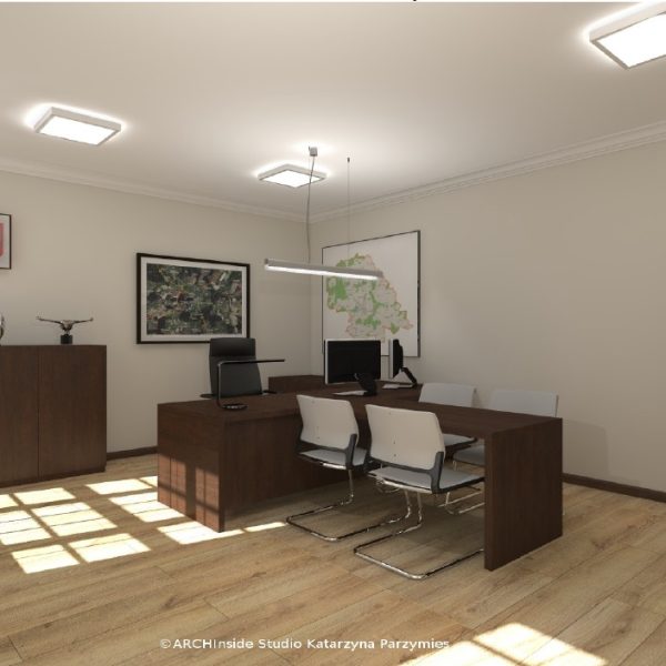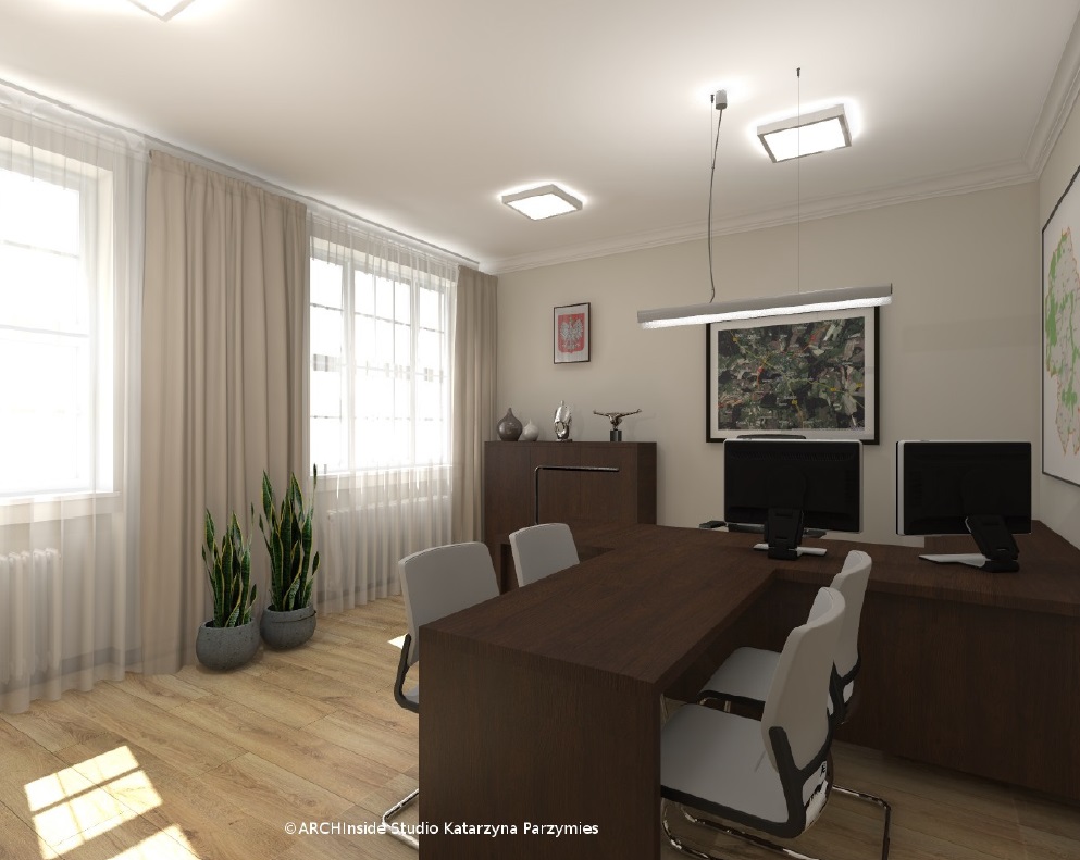 Kontrakt opiewał na kwote ok. 50 tys zł brutto. Dostarczyliśmy krzesła konferencyjny, fotele biurowe oraz meble . Wszystkie biurka, szafy, regały , stół konferencyjny, komody i pomocniki zostały wykonane na zamówienie w stolarni pod nadzorem Pani projektant Katarzyny Parzymies.