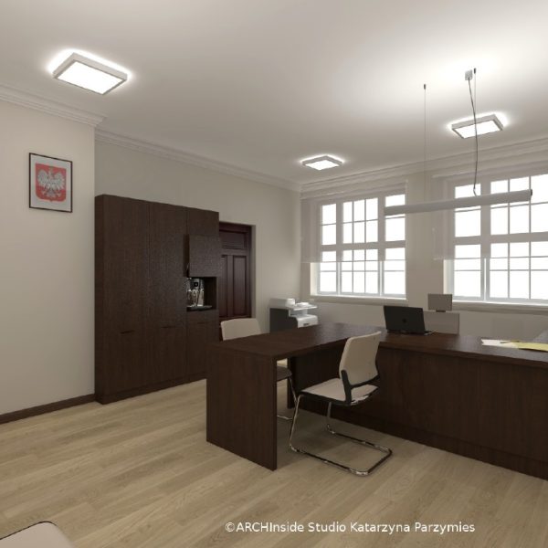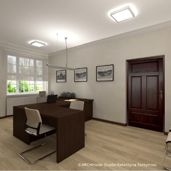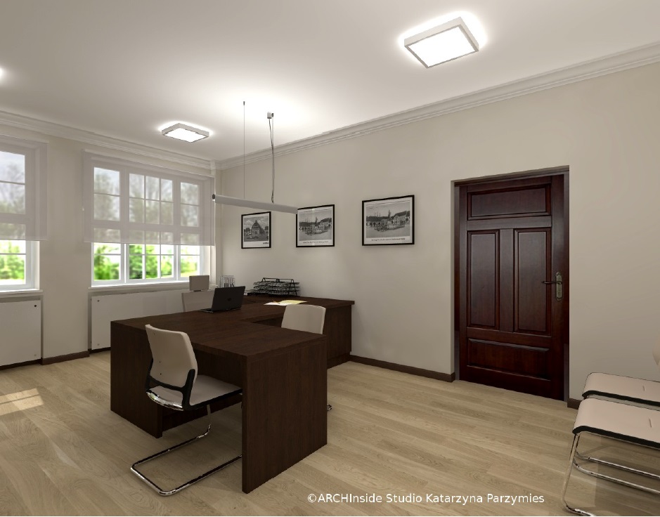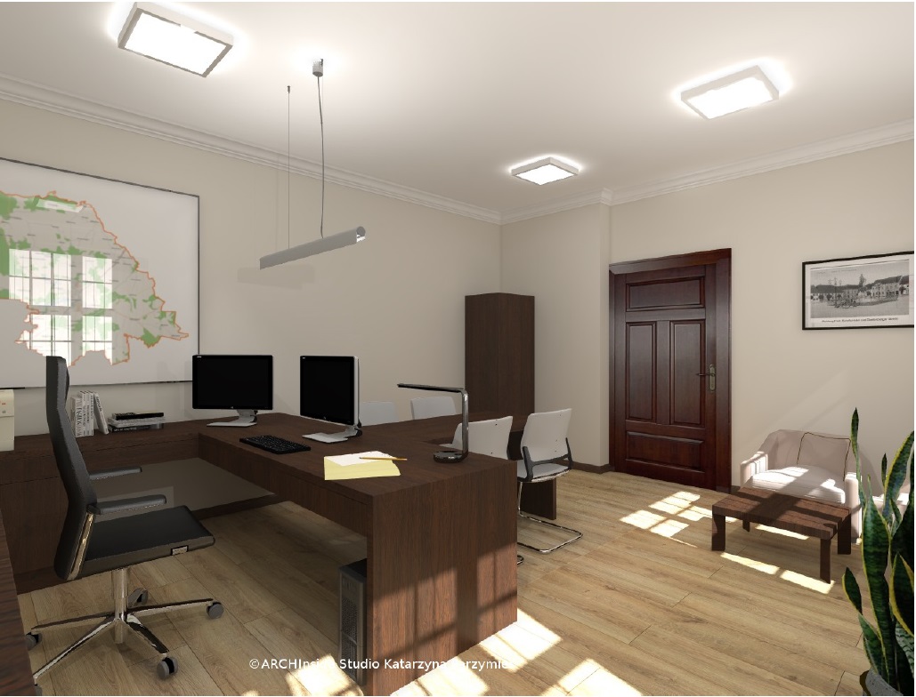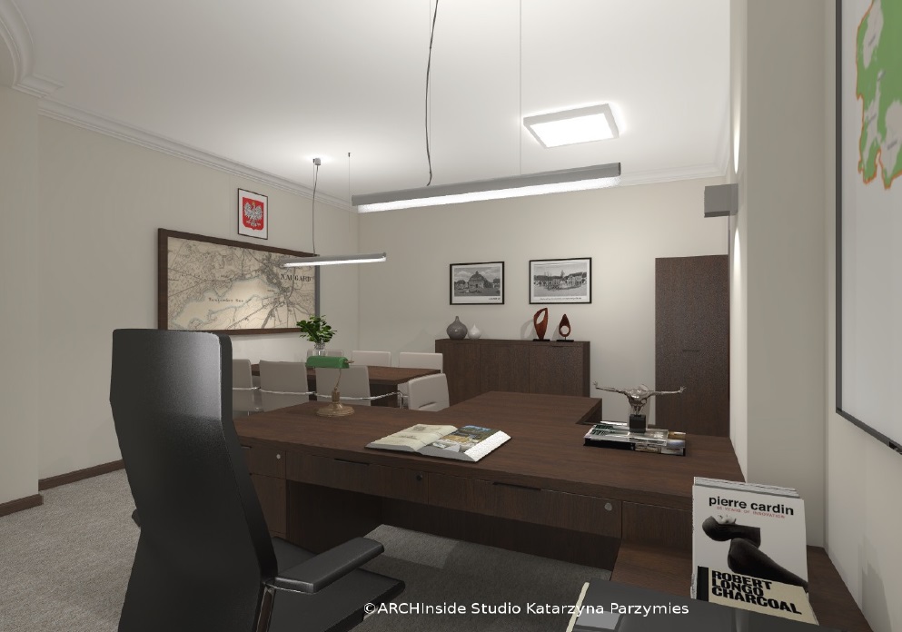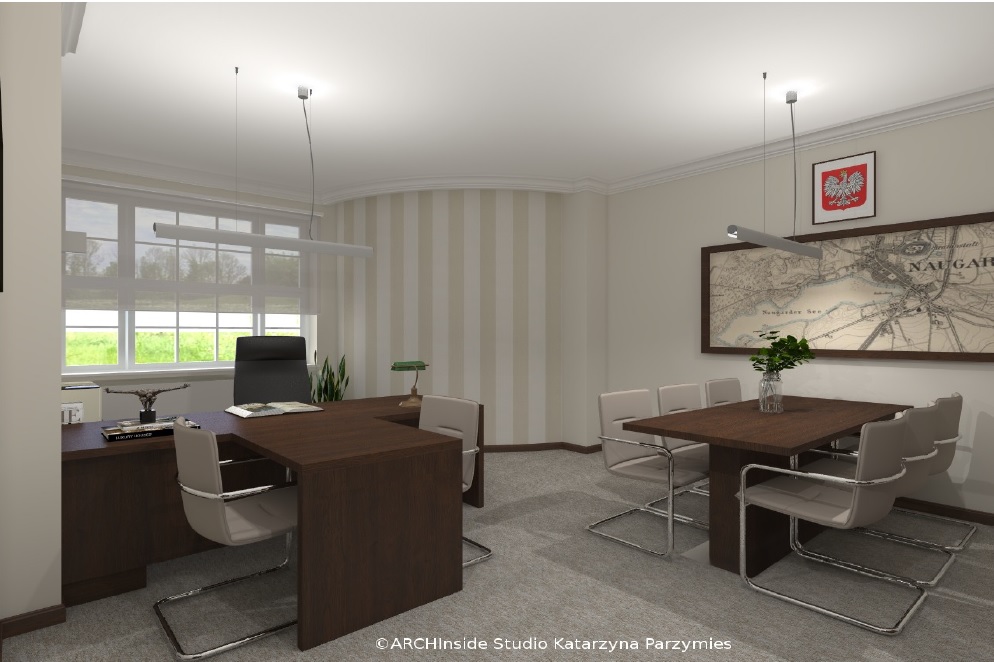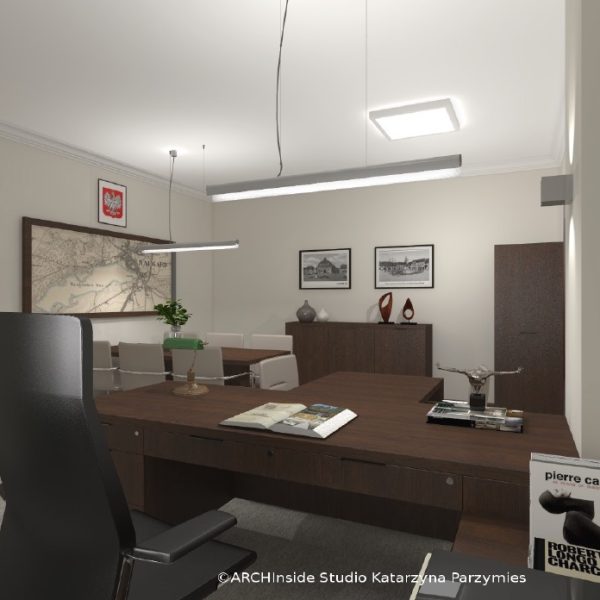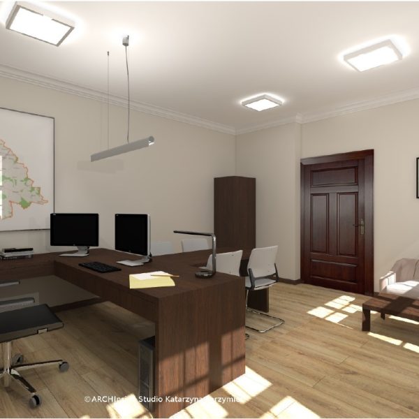 Kontrakt opiewał na kwote ok. 50 tys zł brutto. Dostarczyliśmy krzesła konferencyjny, fotele biurowe oraz meble . Wszystkie biurka, szafy, regały , stół konferencyjny, komody i pomocniki zostały wykonane na zamówienie w stolarni pod nadzorem Pani projektant Katarzyny Parzymies.