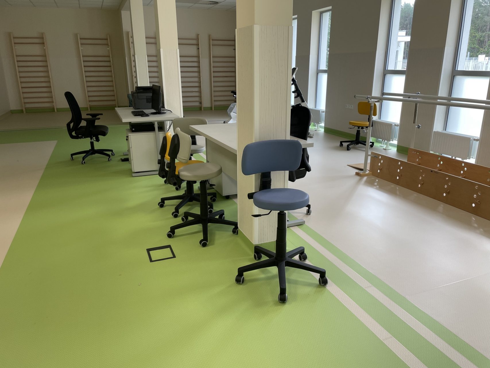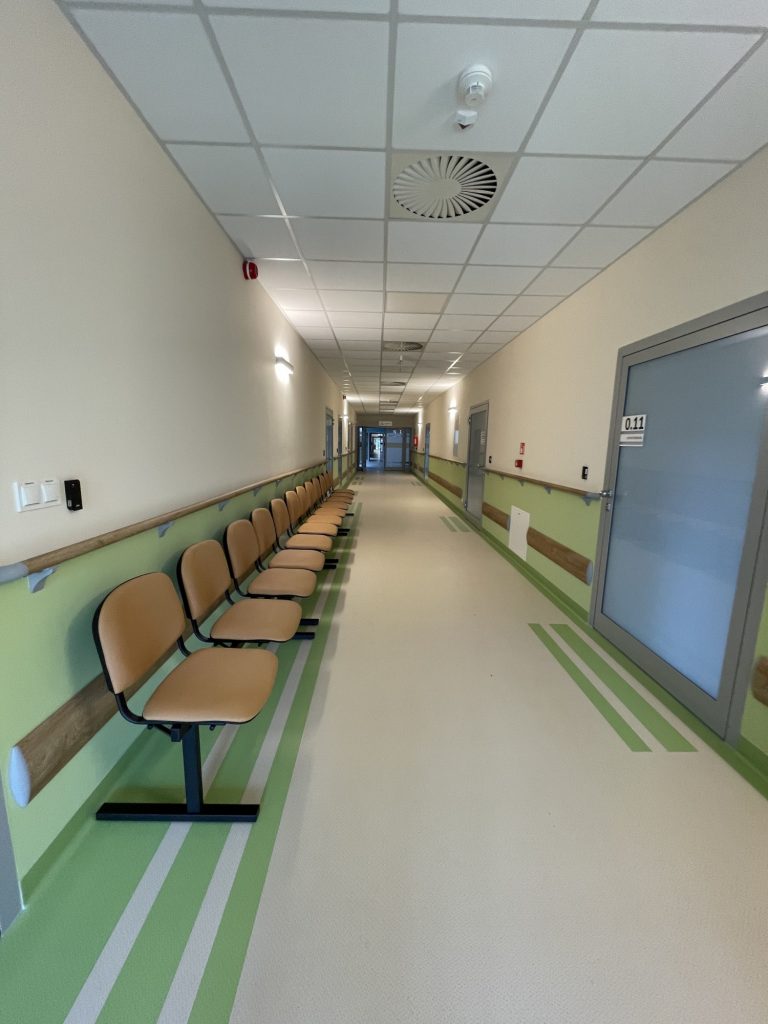 Wyposażyliśmy sale konferencyjne, kapilcę pokoje pacjentów, sale jadalnie, korytarze, sale terapii zajęciowych , gabinety lekarskie oraz część administracyjną ( biura pracowników. biuro Pani Dyrektor, sekretariat) .
